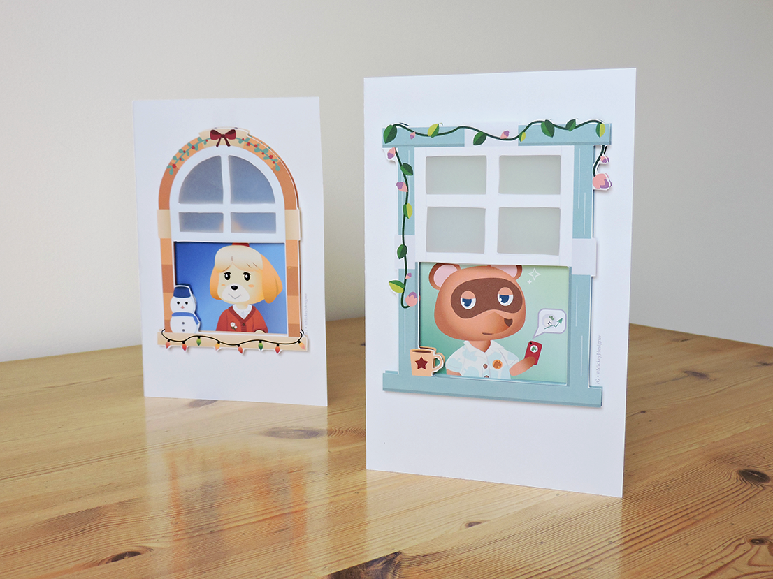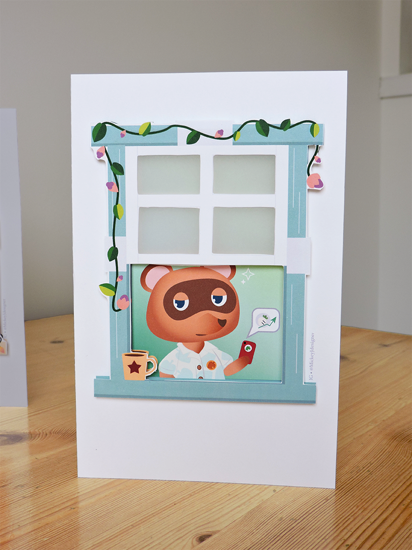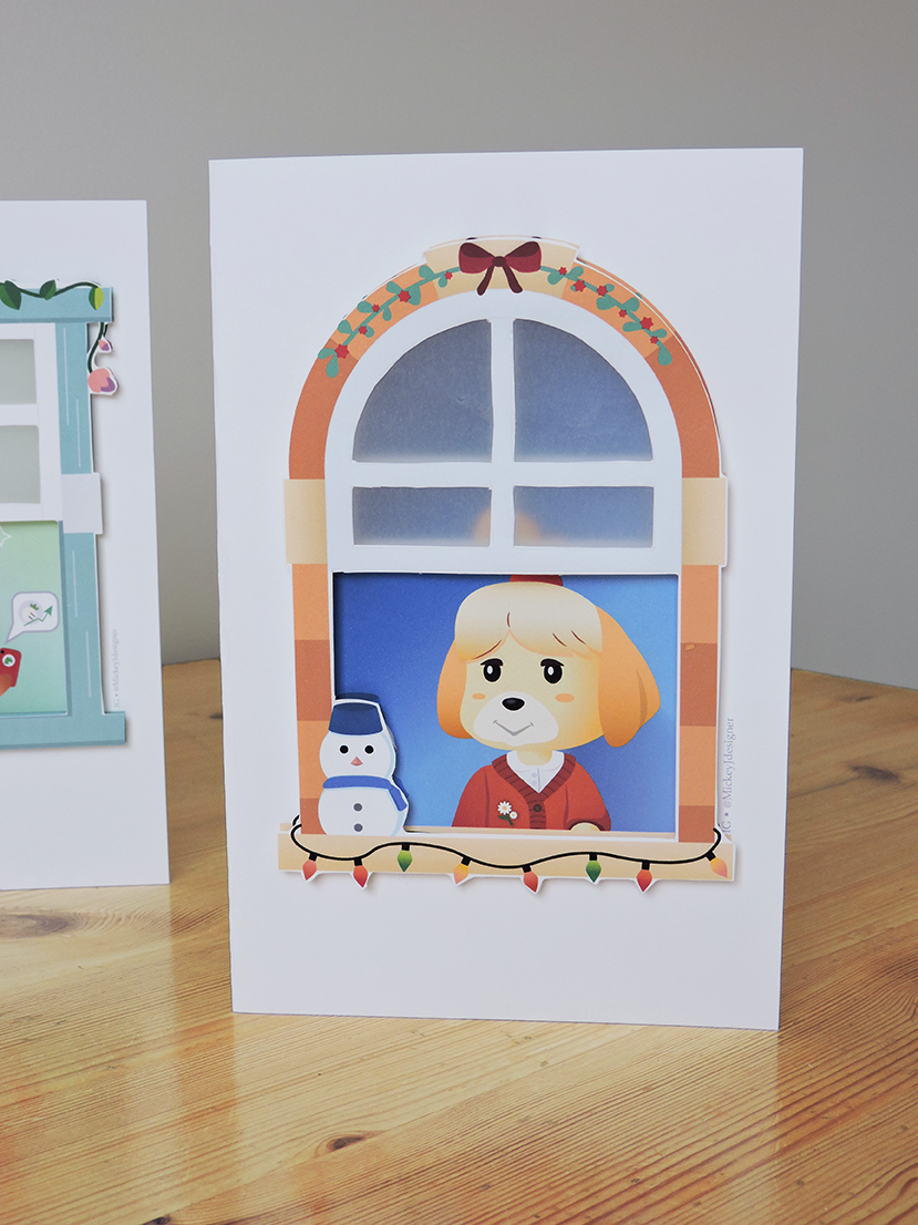 "Animal Crossing" video game. One layer of the paper cut windows are added on top to give it some depth. It's an inspiration from a simple paper cut shadow box.