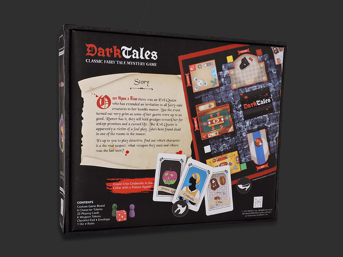 Once upon a time, there was an Evil Queen who invited all fairy-tale creatures to her humble manor. But some of her guests are up to no good. Rumor has it, they still hold grudges toward her for unkept promises and a cursed life. Foul play is afoot. The Evil queen was found dead! It's up to you to play detective find out which character is the real suspect, what weapon they used and where was she last seen?